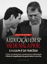 Ora, o que faz o governo Tarcísio? O contrário de tudo isso. Mais uma vez denuncio o corte de R$ 11 bilhões da Educação (redução de 30% para 25% as verbas do Orçamento Estadual destinados ao setor), sob o argumento de melhorar a Saúde. Você, leitor, você leitora, viu alguma mudança positiva na saúde estadual? Evidentemente, não. Ocorre que a cada reivindicação que fazemos para a Educação estadual ouvimos: “não temos verba suficiente para atender”. Cortam verbas, investem em projetos absurdos como escola cívico militar e alegam que não há recursos para melhorar as escolas estaduais e valorizar os profissionais da Educação. Não faz sentido algum. Ou melhor, faz sentido dentro de um projeto de desmonte da Educação pública, visando criar caminhos para a sua privatização.